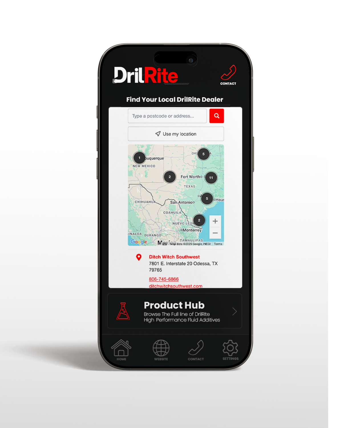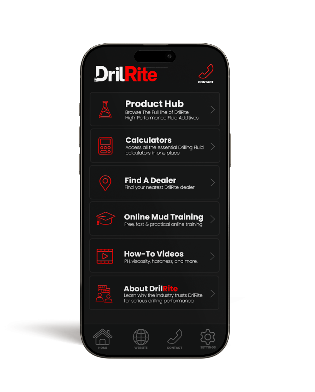 Whether you need a quick local source for DrilRite products or want to talk with one of our Certified Drilling Fluid Engineers, the DrilRite App has you covered.